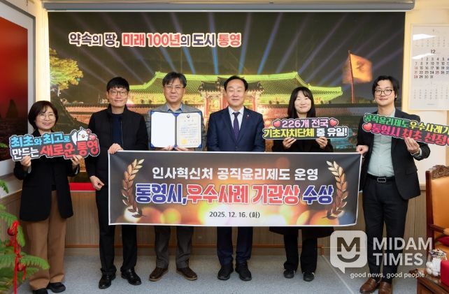 미담타임스 김교환 기자 | 통영시는 지난 16일 인사혁신처가 주관하는‘공직윤리제도 운영 평가’에서 우수사례기관으로 선정돼 정부세종청사에서 인사혁신처장상을 수상했다.