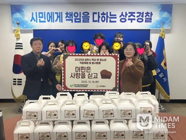 학교 밖 청소년들이 지난 12월 16일 직업체험 프로그램에 참여하여 정성스럽게 만든 초코머핀 300개를 평소 지역 시민들의 안전과 치안을 위해 최선을 다하는 상주경찰서 관계자들에게 감사의 마음을 담아 전달했다.