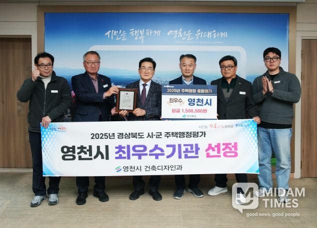 미담타임스 김준완 기자 | 영천시는 경상북도 주관 ‘2025년도 경상북도 건축디자인분야 주택행정분야’에서 최우수상을 수상했다고 12일 밝혔다.