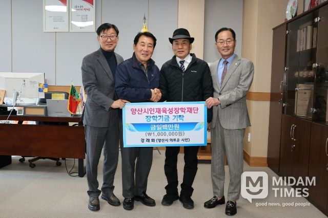 미담타임스 김교환 기자 | 양산시인재육성장학재단은 16일 양산시 ‘의로운 시민’으로 선정된 강래화씨가 시로부터 받은 위로금 100만원 전액을 장학금으로 기탁했다고 밝혔다.