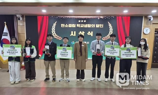 미담타임스 김교환 기자 | 창원특례시는 16일 시청 제3회의실에서 ‘탄소중립 학교생활의 달인’과 ‘우리가 그리는 미래 그림 공모전’시상식을 개최했다.