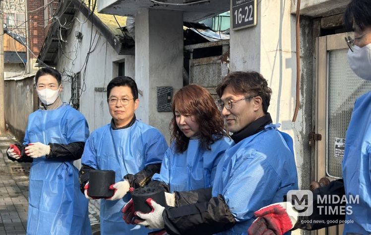 - 나눔 봉사에 참여한 40여 명의 직원들은 취약계층 4가구에 연탄 1천 장을 직접 전달했다.