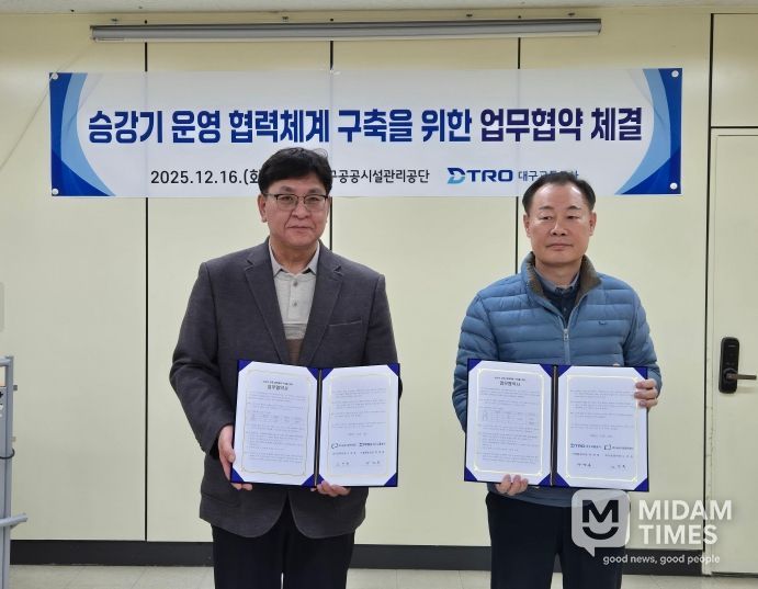 미담타임스 김교환 기자 | 대구공공시설관리공단은 12월 16일 대구교통공사와 지하도상가 및 지하철역사 내 승강기 운영 협력체계 구축을 위한 업무협약을 체결했다.