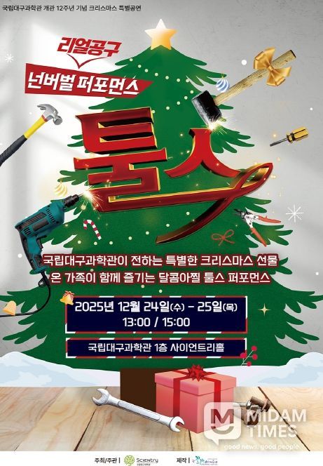 또한, 12월 문화예술 정기공연으로 12월 20일 ‘크리스마스 선물이 사라졌다’ 가족 뮤지컬과 국립대구과학관 개관 12주년 기념 크리스마스 특별공연 ‘넌버벌 퍼포먼스 툴스(TOOLS)’가 12월 24일부터 25일 2일간 국립대구과학관 사이언트리홀에서 개최한다.