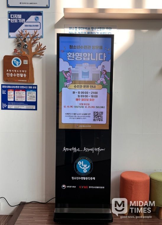 미담타임스 김준완 기자 | 포항시청소년재단 포항시청소년수련관은 한국청소년활동진흥원이 주관하는 ‘2025년 청소년수련활동인증제 디지털현판(DID) 보급기관’으로 선정됐다고 밝혔다.