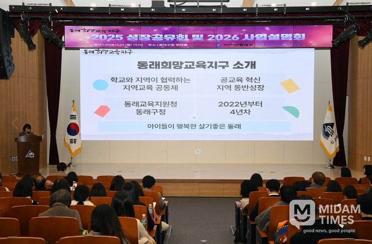 미담타임스 김교환 기자 | 부산 동래구는 지난 15일 동래구청 동래홀에서 동래교육지원청과 함께 ‘2025년 성장공유회 및 2026년 사업설명회’를 성황리에 개최했다고 밝혔다.