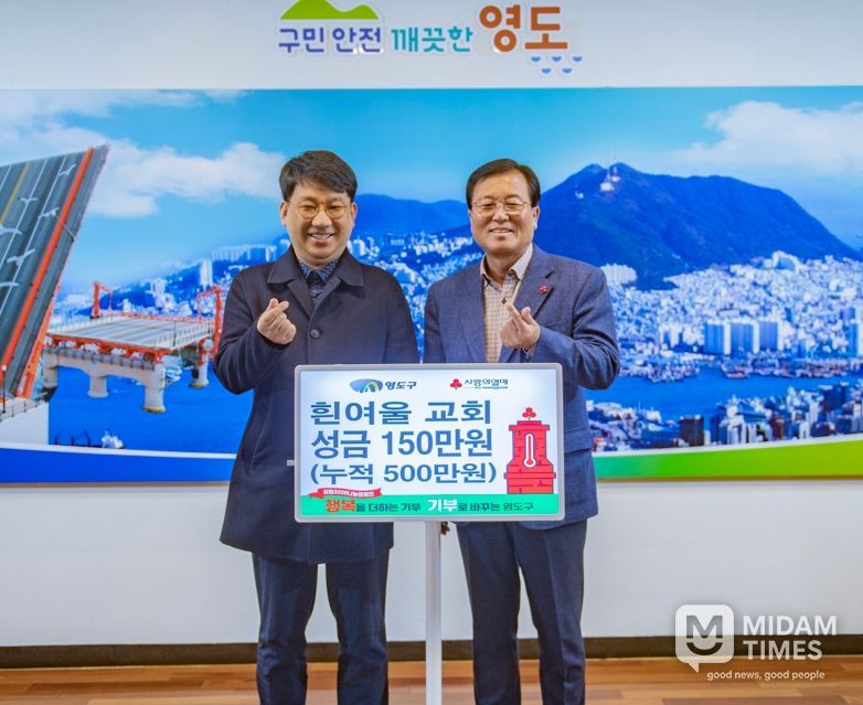미담타임스 김교환 기자 | 영도구 소재 흰여울교회(담임목사 정민교)는 지난 12월 16일 영도구를 찾아 ‘희망2026 나눔 캠페인'의 따뜻한 온기를 더하며 이웃돕기 성금 150만 원을 기탁했다.