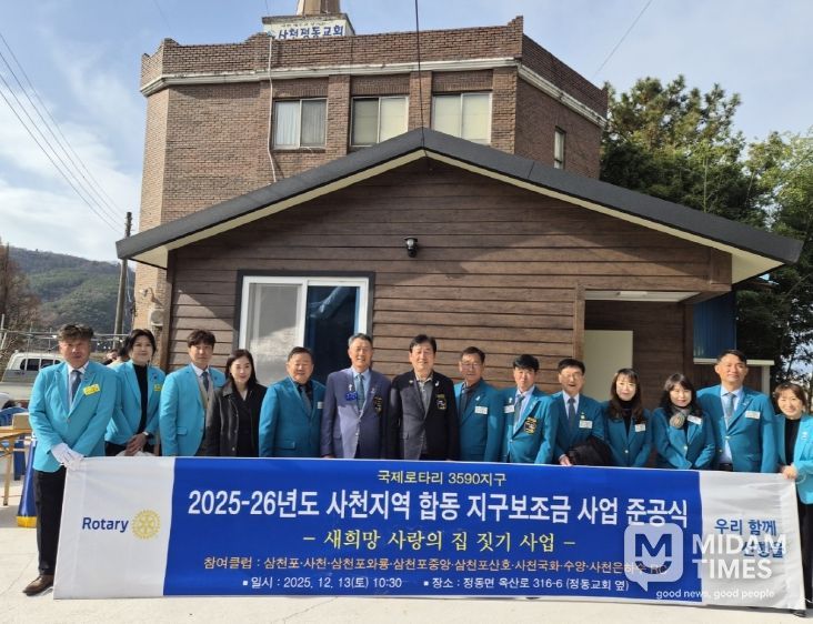미담타임스 김교환 기자 | 국제로타리 3590지구 사천지역 8개 클럽(대표 이윤석)은 지난 13일 오전 10시 30분, 사천시 정동면에 화재로 주거를 상실한 장애인가정을 위한 ‘새희망 사랑의 집짓기’ 준공식을 개최했다.