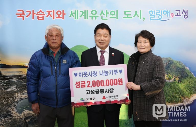 미담타임스 김교환 기자 | 고성군은 12월 17일 고성공룡시장 상인회(회장 김성배)에서 연말연시 지역의 어려운 이웃을 위해 성금 200만 원을 기탁했다고 밝혔다.
