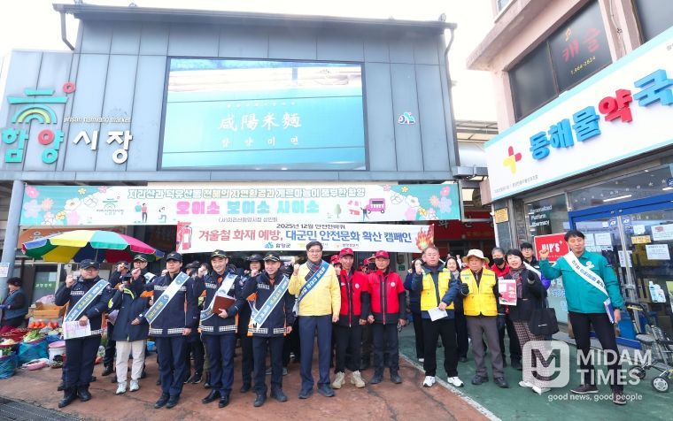 미담타임스 김교환 기자 | 함양군은 겨울철 화재 발생 위험이 커지는 시기를 맞아 지난 17일 지리산함양시장에서 ‘2025년 겨울철 화재예방 대군민 캠페인’을 실시했다.