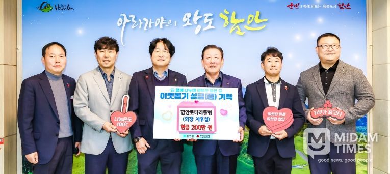 미담타임스 김교환 기자 | 함안군은 함안로타리클럽(회장 차후섭)이 18일 연말을 맞아 ‘희망 2026 나눔 캠페인’에 동참하며 지역 내 어려운 이웃을 돕기 위한 성금 200만 원을 함안군에 기탁했다고 밝혔다.