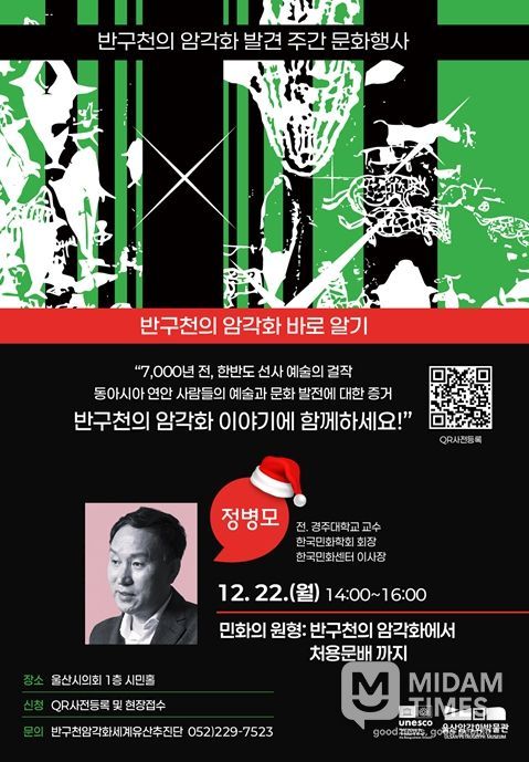 강연에 관심이 있는 시민은 암각화박물관 누리집공지사항에 게시된 정보무늬(QR코드)를 통해 사전등록 하거나 행사 당일 현장을 방문하면 참여 가능하다.