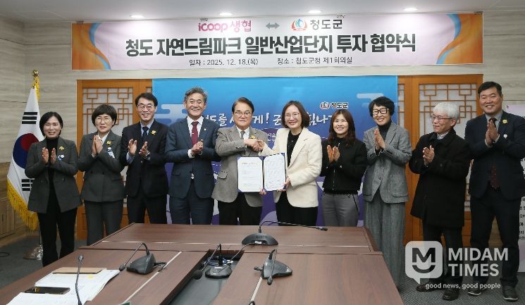 미담타임스 김준완 기자 | 청도군은 지난 12월 18일 아이쿱소비자생활협동조합연합회와 '청도 자연드림파크 일반산업단지' 조성 및 투자 활성화를 위한 투자협약을 체결했다고 밝혔다.