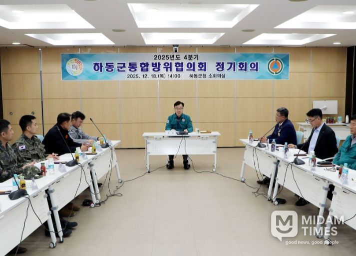 미담타임스 김교환 기자 | 하동군은 지난 18일 군청 소회의실에서 통합방위협의회 4분기 정기회의를 열어 국내외 안보 정세를 점검하고, 지역방위 체계 강화를 위한 협력 방안을 논의했다고 밝혔다.