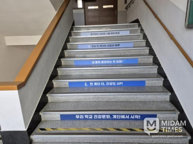 이번 건강계단 조성은 등·하교 및 교내 이동 시 자연스럽게 계단을 이용하도록 유도해 걷기 실천 분위기를 조성하고, 신체활동의 중요성과 자기관리 메시지를 담은 문구를 배치함으로써 계단을 오르며 건강의 가치를 인식할 수 있도록 했다.