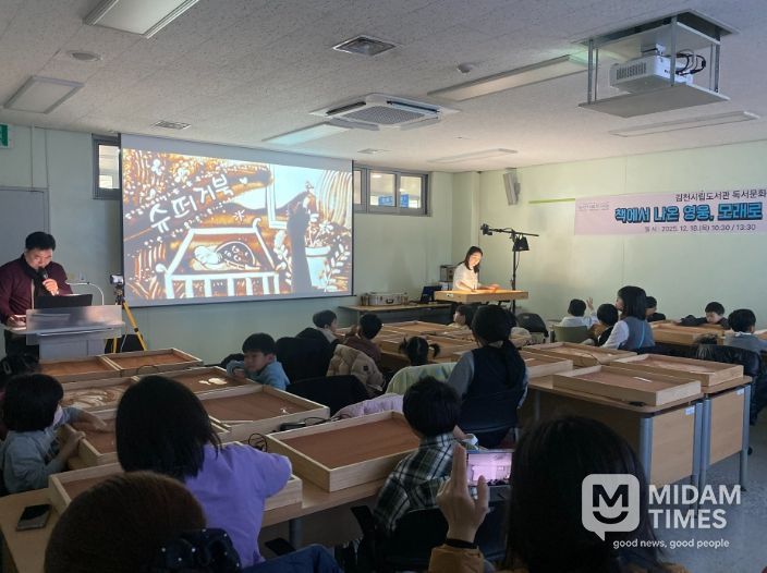 미담타임스 김준완 기자 | 김천시립도서관은 지난 18일 문화 향유 접근성이 낮은 장애 아동을 대상으로 독서 문화 공연 '책에서 나온 영웅, 모래로 만나는 슈퍼거북'을 성황리에 운영했다고 밝혔다.