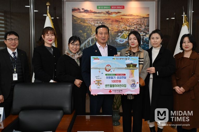 미담타임스 김교환 기자 | 국공립 센트럴별하어린이집(원장 이현숙)은 지난 10일 남구청을 방문하여 어린이집에서 개최한 ‘작은손 큰나눔 모금함’ 행사에서 모금한 성금을 전달했다.