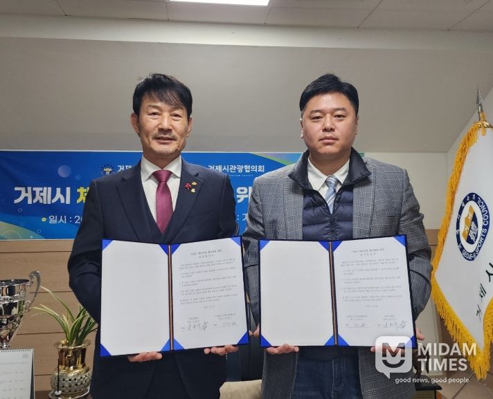 한편, 이날 협약식에는 거제시체육회 김환중 회장과 사단법인 거제시관광협의회 김철은 회장이 참석해 협약서에 서명했다.