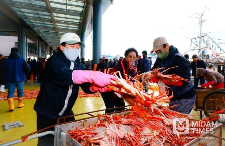 미담타임스 김준완 기자 | 차가운 겨울 바다의 진미 울진대게가 죽변항과 후포항을 붉게 물들인다.