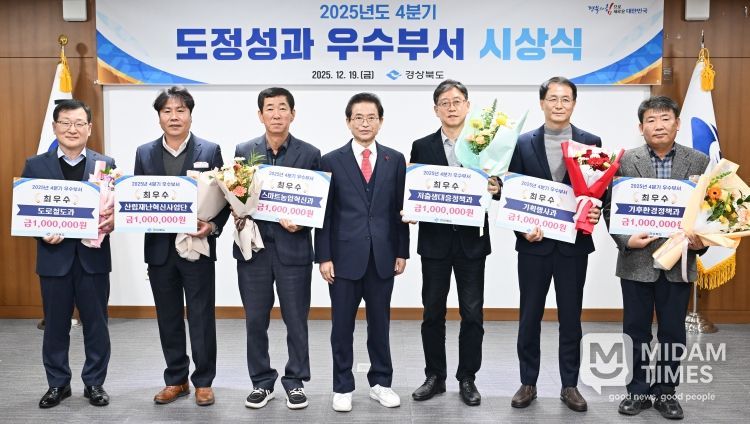 미담타임스 김준완 기자 | 경상북도는 19일 호국실에서 2025년 4분기 동안 탁월한 성과를 거둔 6개 부서를 ‘우수부서’로 선정해 시상했다.