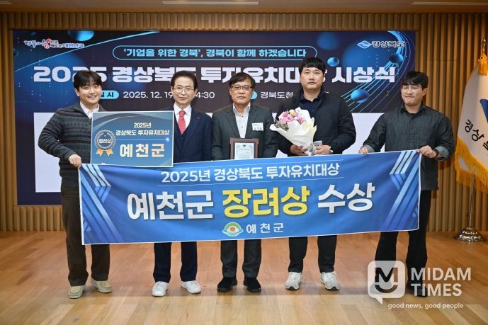 미담타임스 김준완 기자 | 예천군은 19일, 경북도청에서 개최된 ‘2025년 경상북도 투자유치대상’ 시상식에서 시·군 자치단체 부문 장려상을 수상했다.