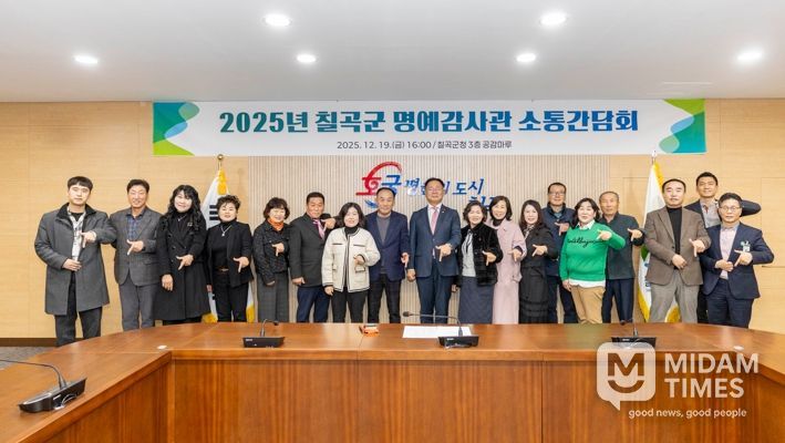 미담타임스 김준완 기자 | 칠곡군은 지난 19일 군청 3층 공감마루에서 군민이 참여하는 열린 감사체계를 강화하고, 현장의 다양한 의견을 군정에 반영하기 위해 2025년 칠곡군 명예감사관 소통간담회를 개최했다.