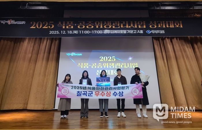 미담타임스 김준완 기자 | 칠곡군은 18일 경상북도가 주관한 '2025년 식품위생관리 시·군 종합평가'에서 ‘우수상’을 수상하는 영예를 안았다.