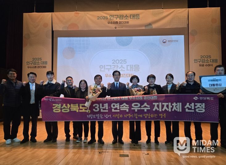미담타임스 김준완 기자 | 경상북도가 행정안전부 주관 ‘2025년 인구감소대응 우수사례 경진대회’에서 지역 기반 이민정책으로 대통령상을 받으며, 3년 연속 인구 감소 대응 우수기관으로 선정됐다.