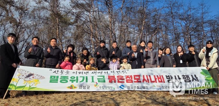 미담타임스 김준완 기자 | 의성군은 12월 19일 대형산불로 피해를 입은 ‘붉은점모시나비 서식지’(안계면 도덕리 산177)에서 멸종위기 야생생물 Ⅰ급인 붉은점모시나비 유충 100여 개체를 방사했다고 밝혔다.