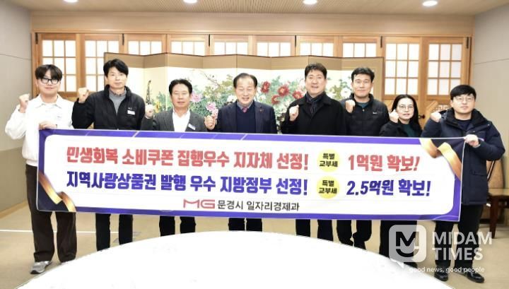 미담타임스 김준완 기자 | 문경시는 행정안전부가 실시한 ‘민생회복 소비쿠폰 집행 우수 지자체 평가’에서 특별교부세 1억 원, ‘지역사랑상품권 발행 우수 지방정부 평가’에서 특별교부세 2억 5천만 원을 확보했다.