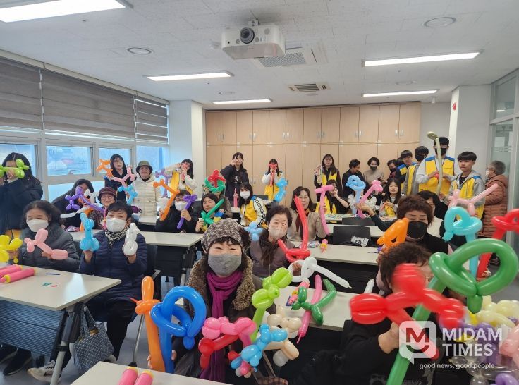 특히 풍선아트는 기본 매듭법부터 꽃·동물 모양 만들기까지 단계별로 진행되어 어르신들의 호응이 높았다.
