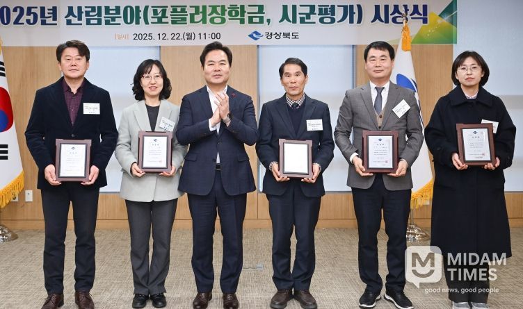 미담타임스 김준완 기자 | 경상북도는 22일 도청 사림실에서 ‘2025년 산림분야 종합평가’우수 시군에 표창패와 포상금을 수여하고 한 해 동안 산림시책 행정 추진을 위해 노력한 시군 관계자들을 격려했다.