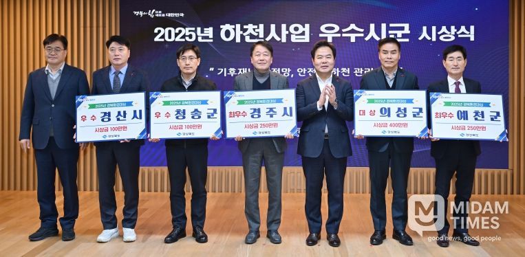 미담타임스 김준완 기자 | 경상북도는 22일 도청 다목적홀에서 2025년 경북환경대상 시상식을 개최, 한 해 동안 기후환경 전 분야에 대해 탁월한 성과를 거둔 시군을 선정해 포상하며 그 간의 노고를 격려했다.