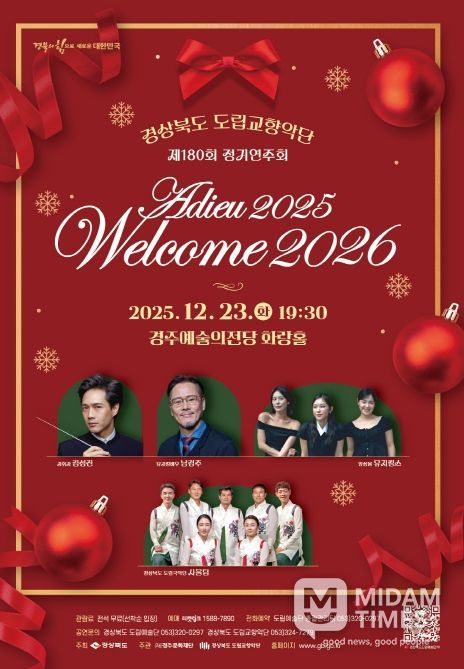 미담타임스 김준완 기자 | 경상북도 도립교향악단이 23일 경주예술의전당 화랑홀에서 제180회 정기연주회 ‘아듀 2025! 웰컴 2026!’를 개최한다.