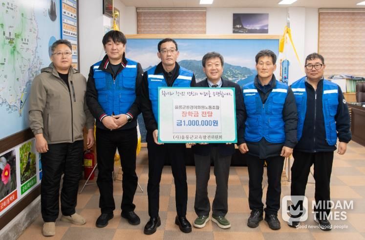 미담타임스 김준완 기자 | 울릉군환경미화원노동조합은 지난 20일, 우리 지역 학생들의 교육 발전과 인재 양성을 위해 (사)울릉군교육발전위원회에 장학금 100만 원을 기탁했다.