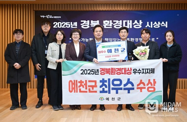 미담타임스 김준완 기자 | 예천군은 22일 경상북도 주관 ‘2025년 경북환경대상’ 평가에서 최우수상을 수상하며 환경 전반에 걸친 우수한 정책 추진 성과를 인정받았다.