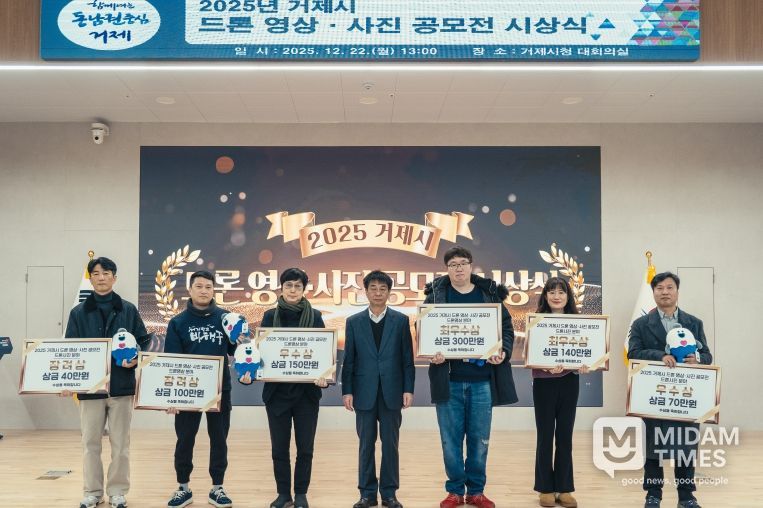 미담타임스 김교환 기자 | 거제시는 12월 22일 오후 1시, 거제시청 3층 대회의실에서'2025 거제시 드론 영상·사진 공모전' 시상식을 개최했다.