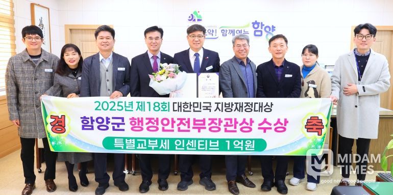 미담타임스 김교환 기자 | 함양군이 행정안전부가 주관하는 ‘2025년 제18회 대한민국 지방재정대상’에서 우수사례로 선정돼 행정안전부 장관상을 받으며, 특별교부세 1억 원을 확보했다.