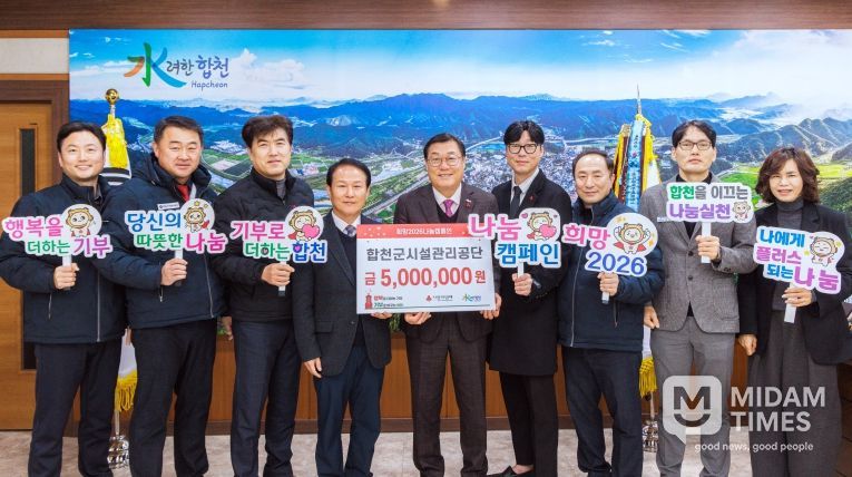 한편 합천군은 2025년 12월 1일부터 2026년 1월 31일까지 희망2026나눔캠페인 이웃돕기 성금 집중 모금 기간을 운영하고 있다. 기탁받은 성금은 경남사회복지공동모금회를 통해 관내 어려운 이웃에 지원할 계획이다. 성금 기탁을 희망하는 분들은 합천군청 주민복지과나 읍면사무소로 연락하면 된다.