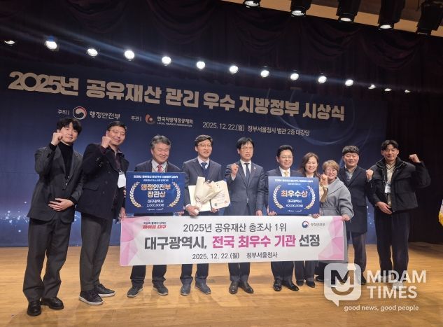 미담타임스 김교환 기자 | 대구광역시는 12월 22일 행정안전부 주최 ‘2025년 공유재산 우수 지방자치단체 시상식’에서 공유재산 총조사 부문 최우수 기관 선정과 더불어, 공유재산 우수사례 경진대회에서 우수상(장관상)을 수상하는 등 공유재산 관리와 활용 분야에서 최고 수준의 역량을 입증했다.
