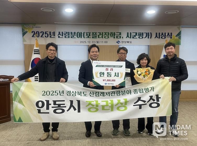 미담타임스 김준완 기자 | 안동시는 경상북도 주관 12월 22일 ‘2025년 산림레저관광분야 종합평가’에서 장려상을 수상했다고 밝혔다.