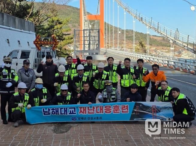 미담타임스 김교환 기자 | 남해군은 겨울철 빈번히 발생하는 도로결빙 사고를 예방하고 신속한 대응체계 확립을 위하여 지난 22일 ‘남해대교 결빙에 따른 재난대응 비상훈련’을 실시 했다.