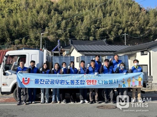 미담타임스 김준완 기자 | 울진군공무원노동조합은 지난 12월 18일 울진읍과 근남면에 거주하는 연탄 사용 가구 3곳을 대상으로 총 1,200장의 연탄을 전달하며 따뜻한 겨울나기를 지원했다.