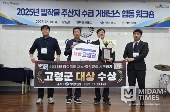미담타임스 김준완 기자 | 고령군은 지난 12월 18일 경상북도에서 실시한 『2025년 경상북도 채소․특작분야 시책평가』에서 대상을 수상했다.