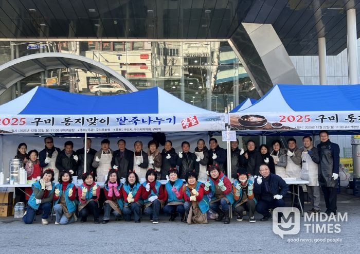 미담타임스 김준완 기자 | 구미시는 지난 22일 구미역 광장에서 구미문화원 주관으로 '2025 동지맞이 팥죽나누기 행사'를 열었다.