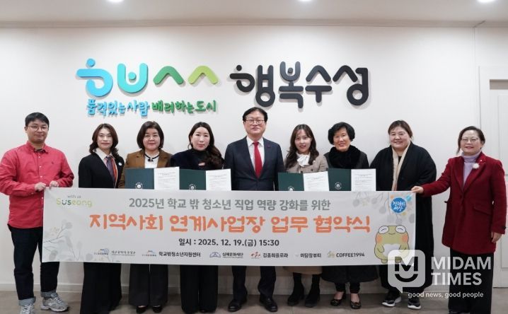 미담타임스 김교환 기자 | 대구 수성구는 지난 19일 학교밖청소년의 직업 역량 강화를 위한 지역사회 연계사업 추진을 위해 관련 기관과 업무협약을 체결했다.