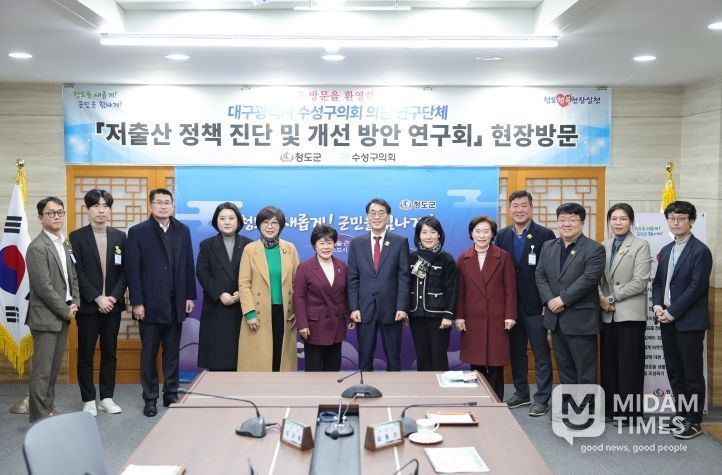 미담타임스 김교환 기자 | 수성구의회 의원연구단체 '저출산 정책 진단 및 개선 방안 연구회'는 지난 22일 청도군을 방문해 체류형 생활인구 유입과 자생돌봄공동체 기반 저출산 대응 정책을 주제로 세미나 및 현장방문을 실시했다.