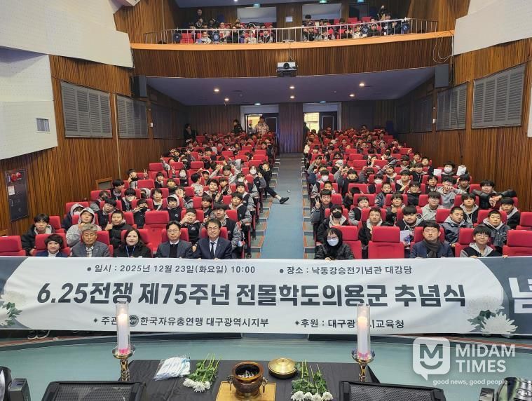 미담타임스 김교환 기자 | 한국자유총연맹 대구광역시지부는 지난 12월 23일 낙동강승전기념관 대강당에서 ‘6.25 전쟁 제75주년 학도의용군 추념식’을 개최했다.