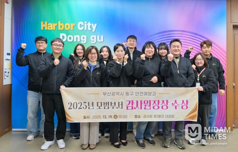 미담타임스 김교환 기자 | 부산 동구는 안전예방과가 감사원으로부터 모범부서로 선정돼 지난 19일 감사원에서 열린 2025년도 모범사례 포상행사에서 감사원장 표창을 받았다고 밝혔다.