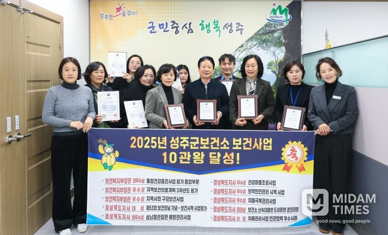 미담타임스 김준완 기자 | 성주군은 군민 건강증진을 위한 맞춤형 보건의료서비스를 제공한 결과 2025년도 경상북도 및 전국 평가에서 보건사업 10개 부문에서 수상하는 쾌거를 이루었다.
